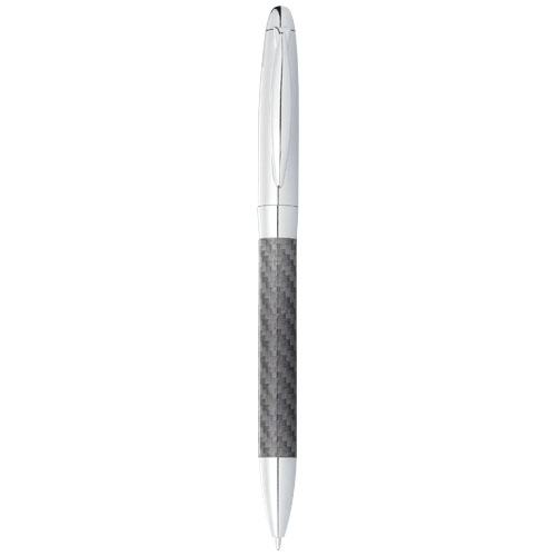 Kulspetspenna med vridmekanism i klassisk design med glänsande överdel och underdel med kolfiberdetaljer. Presentförpackning i form av en cylinder.